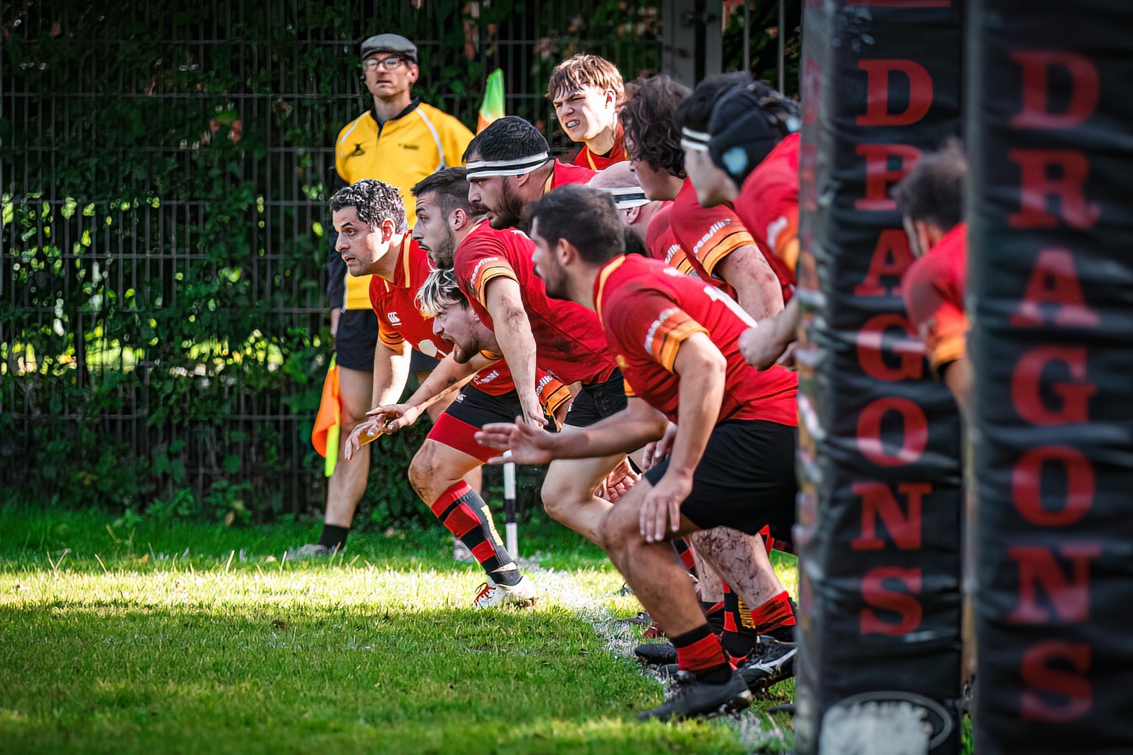 On Saturday, The Düsseldorf Dragons were hosting their second home game of the season against the Rugby Club Bonn-Rhein-Sieg. The Dragons started the game well by opening the scoring with a first converted try after 8 minutes in the game. But the Bonn players did not let them lead the game long and caught back with a try and a conversion. Both the Dragons and the Bonn players managed to score again two tries and one conversion in the first half to end it with a draw of 19 points for each team.
