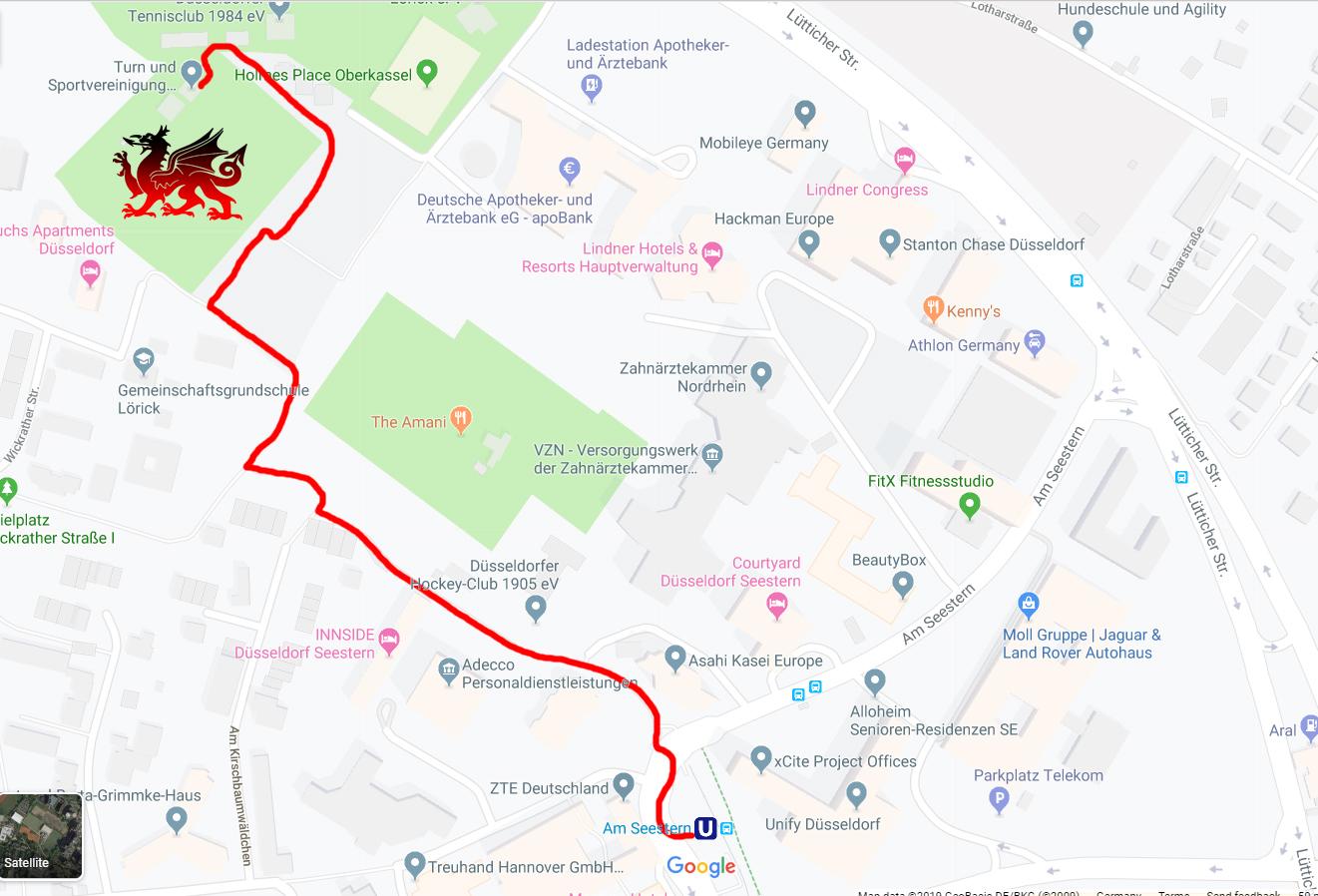 bend, the street ends in a roundabout. The Düsseldorf Dragons’