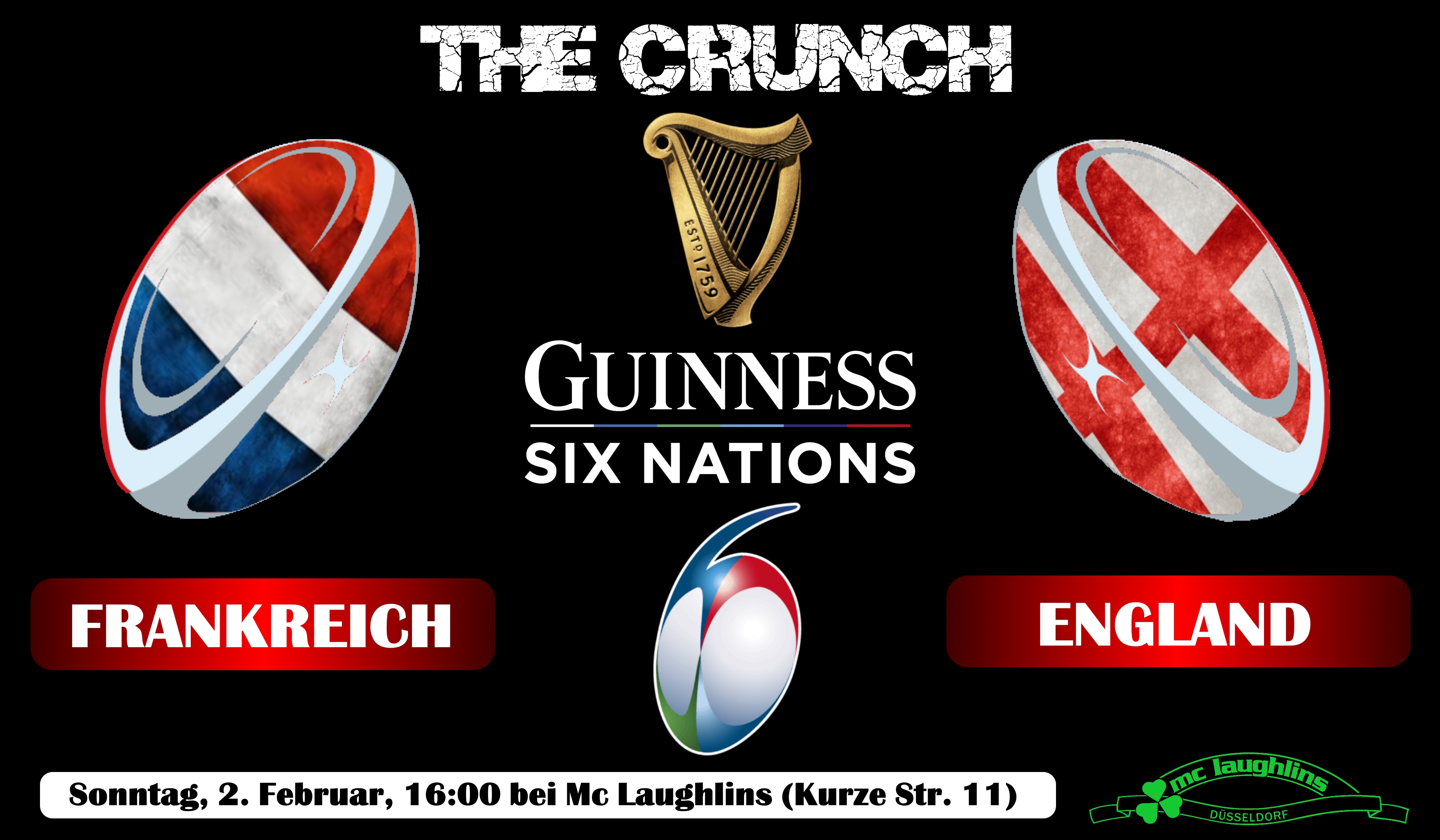 Schaut euch mit den Dragons zusammen „the Crunch" am Sontag. 2. Februar, 16:00 bei Mc Laughlins an.