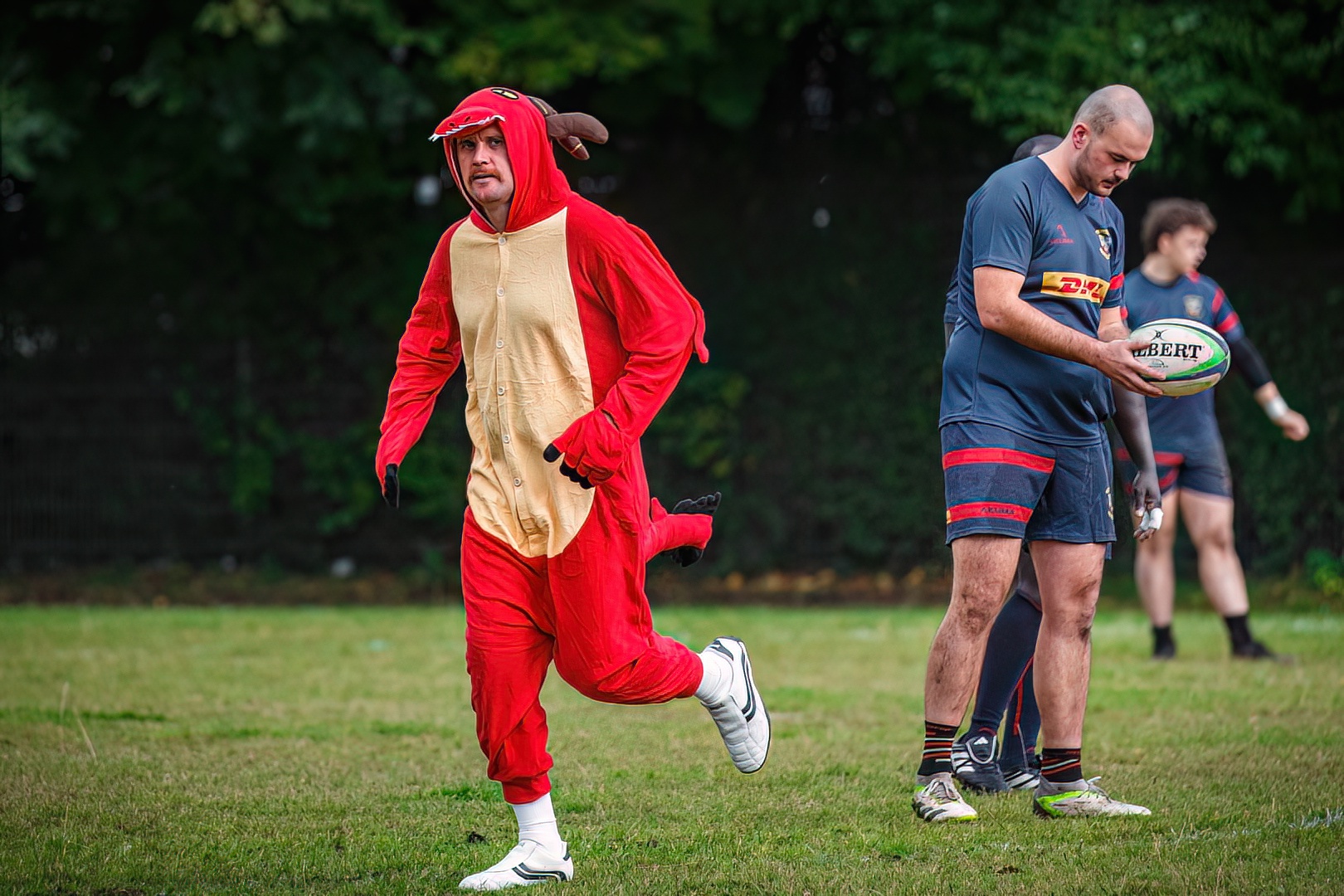 On Saturday, The Düsseldorf Dragons were hosting their second home game of the season against the Rugby Club Bonn-Rhein-Sieg. The Dragons started the game well by opening the scoring with a first converted try after 8 minutes in the game. But the Bonn players did not let them lead the game long and caught back with a try and a conversion. Both the Dragons and the Bonn players managed to score again two tries and one conversion in the first half to end it with a draw of 19 points for each team.