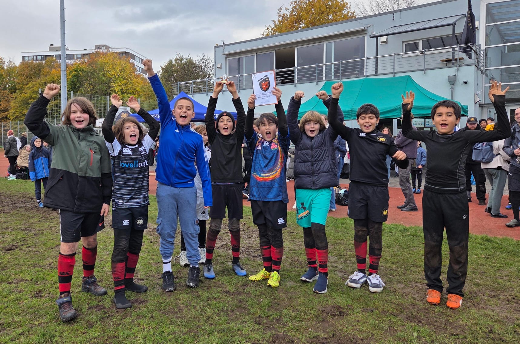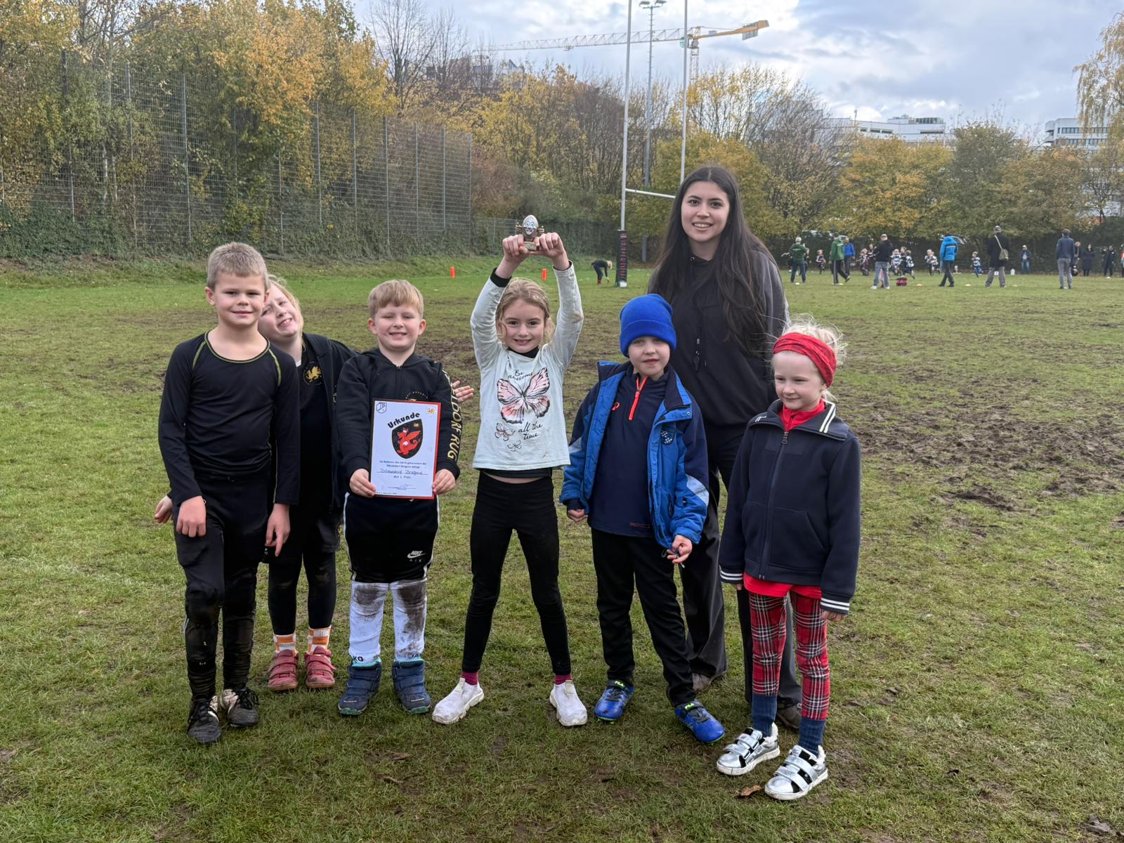 The week-end continued on Sunday with the U8, U10 and U12 children rugby tournament hosted in Düsseldorf. A total of 105 players from Aachen, Köln, Bonn, Munster and Düsseldorf participated in the tournament. The unexpected great weather conditions allowed all the players to compete hard and fair on the pitch.